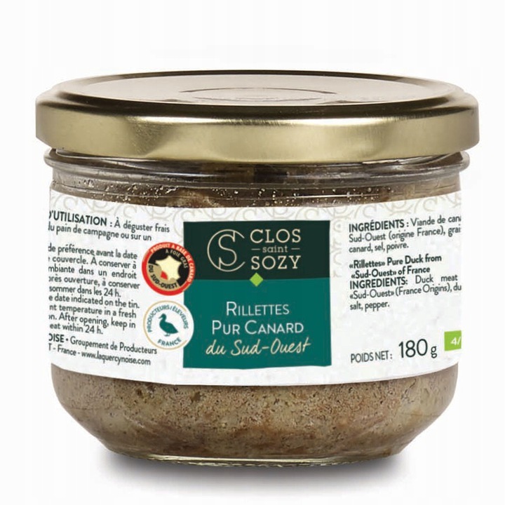 Rillettes z kaczki Clos Saint Sozy to luksusowa wersja tradycyjnego francuskiego smarowidła .